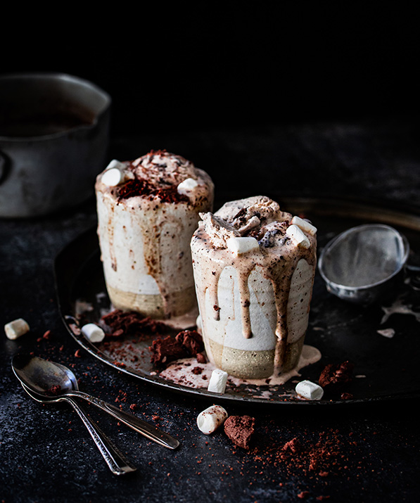 Dairy Ingredients [Skim Milk (Concentrate or Solids), Cream (Milk) (22%)], Water, Glucose Syrup, Sugar, Wheat Flour, Vegetable Oil, Cocoa Solids† (0.9%), High Fructose Syrup, Invert Sugar, Wheat Starch, Vegetable Origin Emulsifiers [471, 322 (Soy)], Flavours, Mineral Salts (500, 503), Salt, Vegetable Gums (412, 410), Corn Starch, Colour (160b), Antioxidant (319).