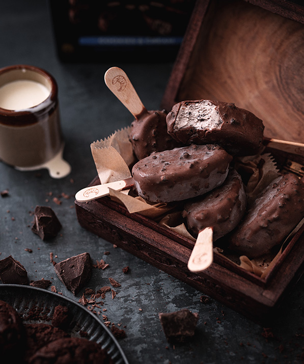 Ice cream contains minimum 10% milk fat. Milk chocolate contains 30% cocoa solids, and 20% milk solids.