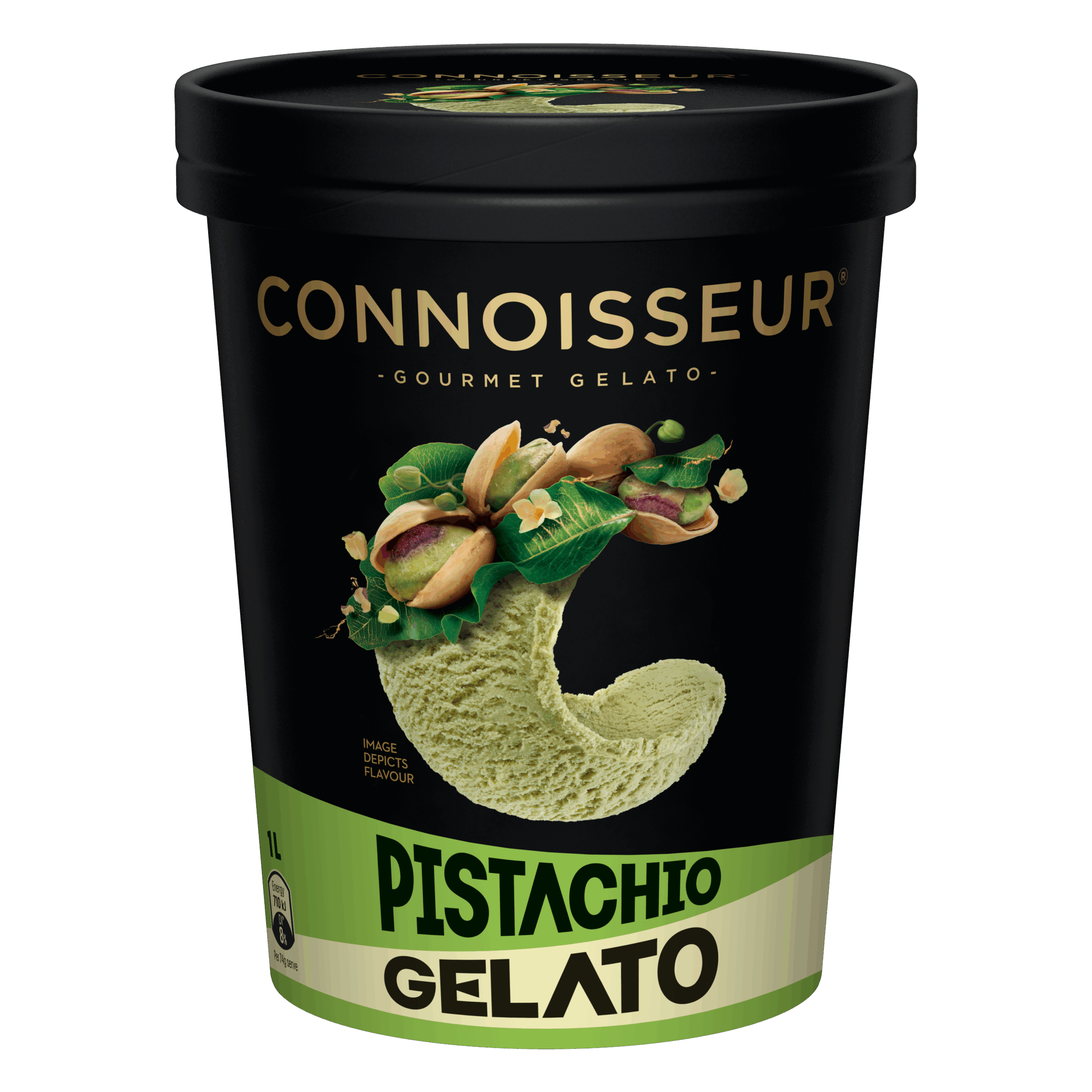 Ingredients: Water, Skim Milk (Concentrate or Solids), Glucose Syrup, Sugar, Coconut Oil, Pistachio (2.5%), Vegetable Origin Emulsifier (471), Flavour, Colours (150d, 141), Vegetable Gums (412, 410), Salt.