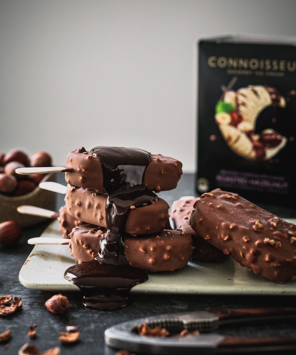 Dairy Ingredients [Skim Milk (Concentrate or Solids), Cream (16%) (Milk), Milk Solids], Sugar, Water, Cocoa Solids†, Glucose Syrup, Hazelnuts (2%), Vegetable Oil, Dextrose Monohydrate, Vegetable Origin Emulsifiers [471, 322 (Soy), 476], Belgian White Chocolate (0.3%) (Milk, Soy), Flavours (contains Milk), Vegetable Gums (412, 410, 440), Colour (150d), Thickener (1442), Salt, Acidity