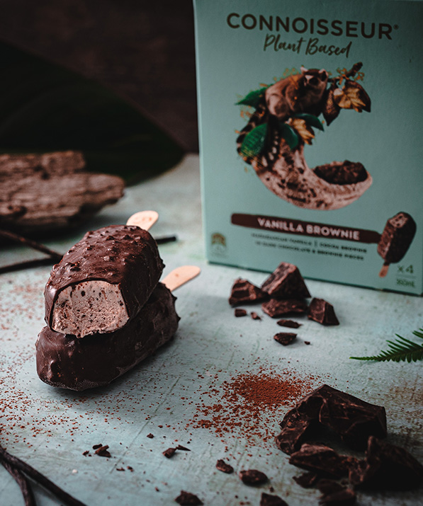 Water, Cocoa Solids†, Sugar, Glucose Syrup, Wheat Flour, Coconut Oil, Vegetable Oil, Dextrose Monohydrate, Pea Protein, Vegetable Origin Emulsifiers [322 (Soy), 476, 471], Flavours, Vegetable Gums (412, 410), Salt, Raising Agent (500), Madagascan Vanilla Extract (0.05%), Colour (160b).